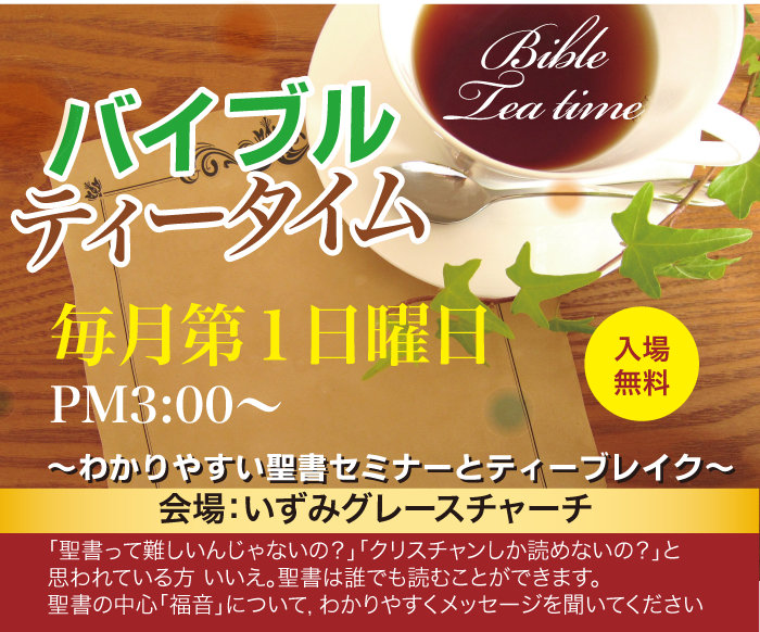 | HOME | 最新情報 | 聖書による福音 | アクセスマップ | 鳳キリスト恵み教会 | 南花台キリスト教会 | いずみグレースチャーチ | 大阪希望学園 | 梅田インターナショナルスクール | 犬猫サポート |
